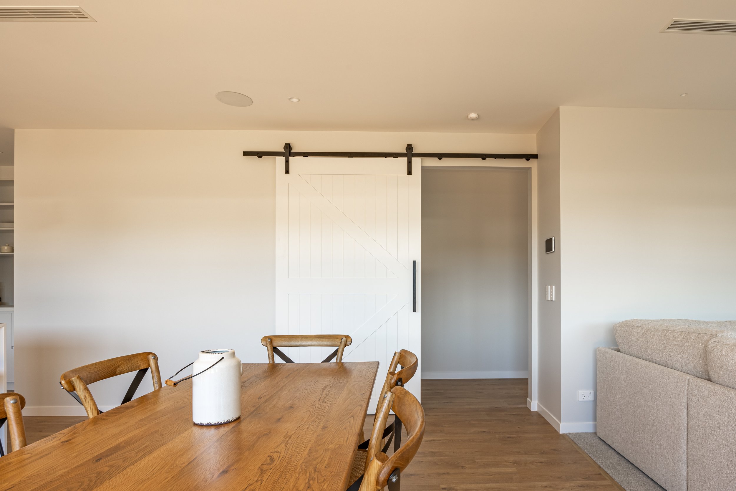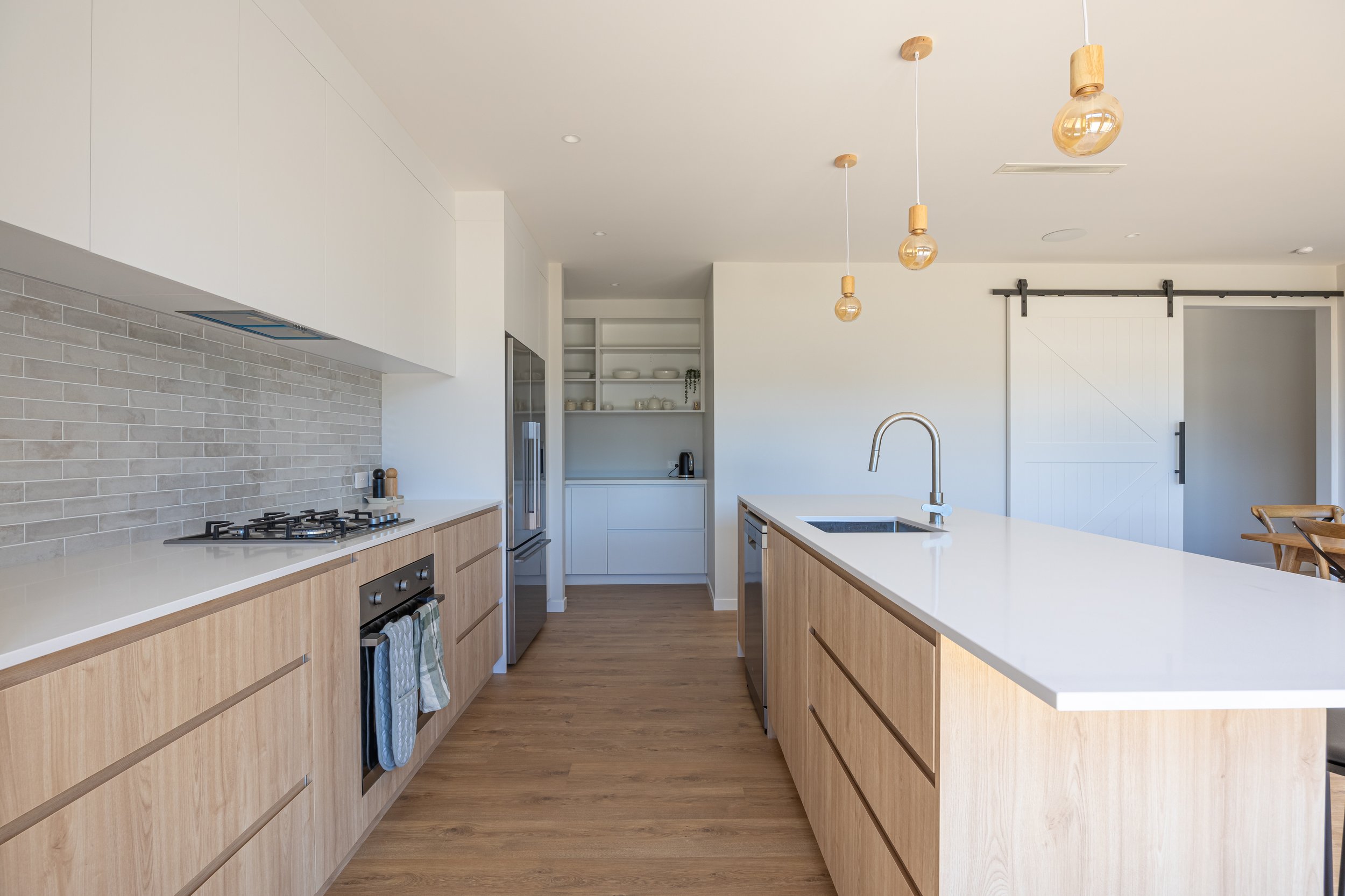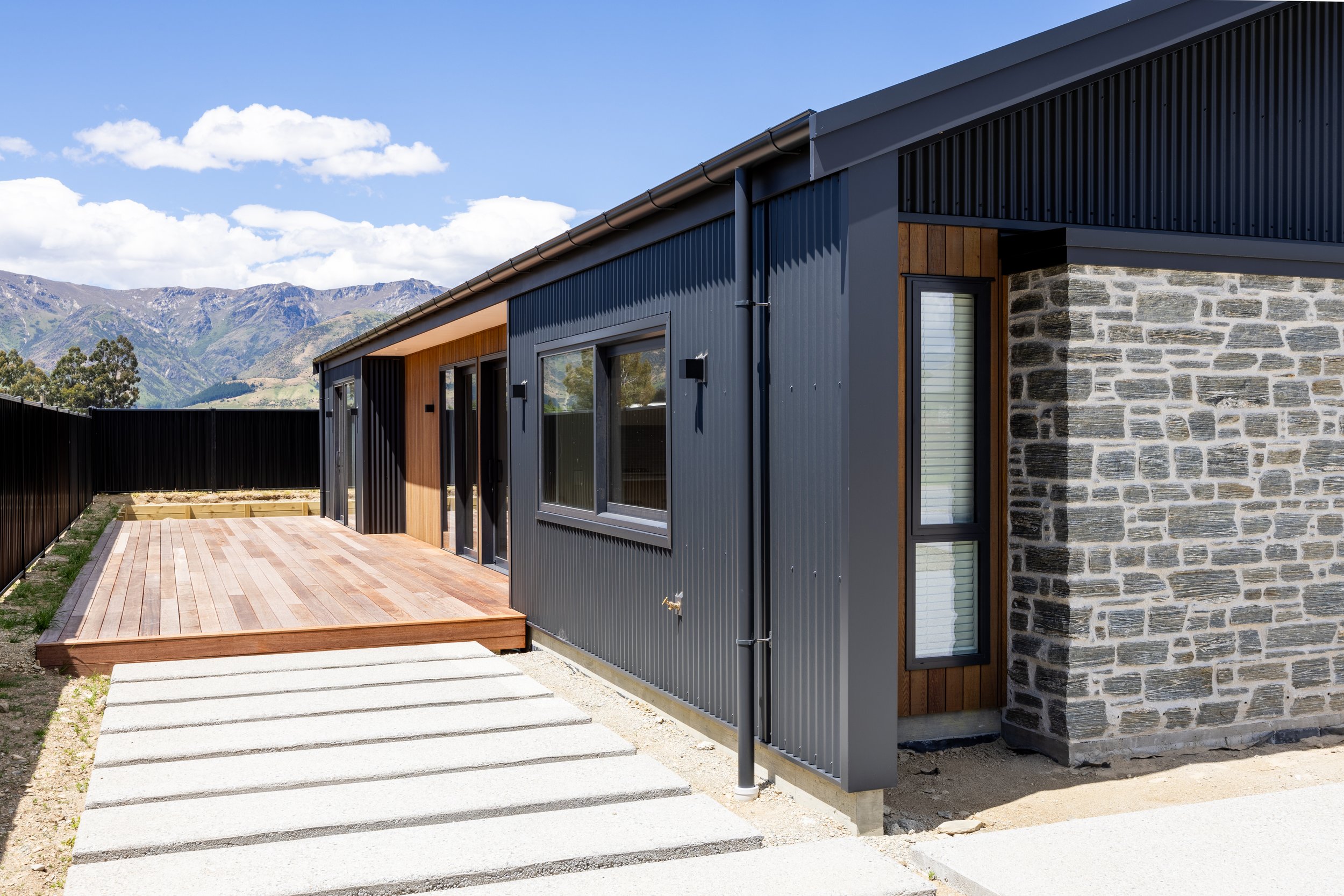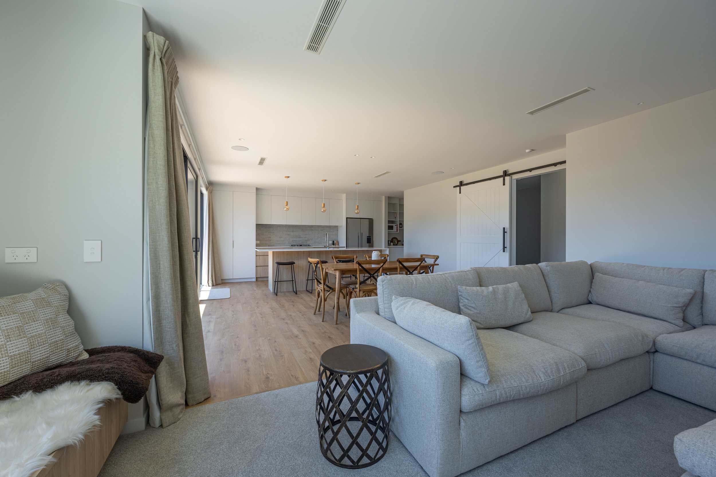This roomy family home was brought to life in Lake Hāwea earlier in 2024. Designed by Open Architecture, this was a 264m2 build with an attached garage and carport. We used Coloursteel and LMA cladding, a sustainable reclaimed product imported from Australia. Hardwood oak flooring with underfloor heating was a key feature, as well as a white-washed grooved ply feature ceiling and stunning lighting throughout
